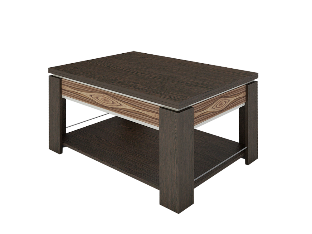 «Агат 24.11» – журнальный стол с механизмом трансформации, позволяющим превращать его в полноценный обеденный. Эффектный рисунок на стекле и контрастные цвета материалов модели, несомненно, украсят любой интерьер.