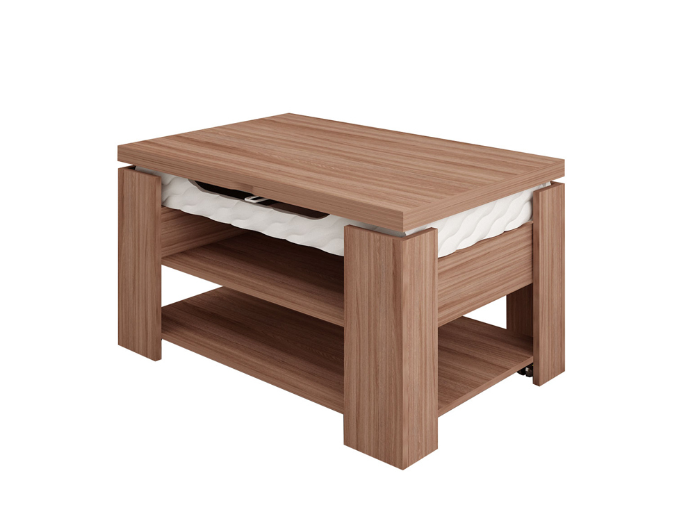 «Агат 27» – это многофункциональная модель, которая сочетает в себе функции журнального и обеденного столов. Cтолешница легко увеличивается вдвое благодаря поворотному механизму.