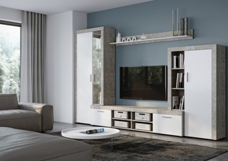 Изюминка данного набора - котрастное сочетание цветов и текстур. Большре количество мест для хранения, компактность и цветовое решение сделают Вашу готиную не только функциональной, но и очень уютной.