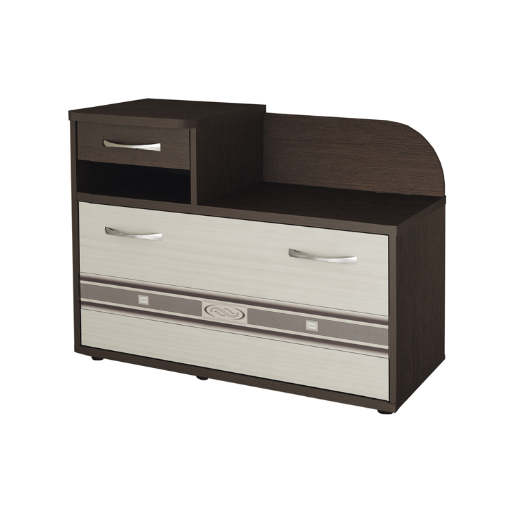 Тумба под обувь Триумф 36.07 входит в набор мебели для прихожей«Триумф». Выполнена в оригинальном сочетании цветов - дуб «Венге» и «Беленый дуб». Модель практична, функциональна и удобна. Тумба под обувь оборудована закрытой секцией для обуви с откидной дверцей, выдвижным ящиком и открытой нишей для мелочей, полкой для телефона и местом для сидения.